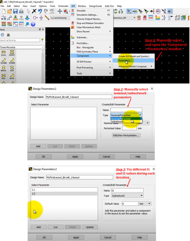- It focuses changes on a small, intentional set of p-cell parameters, keeping edits focused. The engineer does not have to select and parameterize p-cell parameters manually for each iteration. It standardizes quick, narrow-band checks before wideband sign-off.